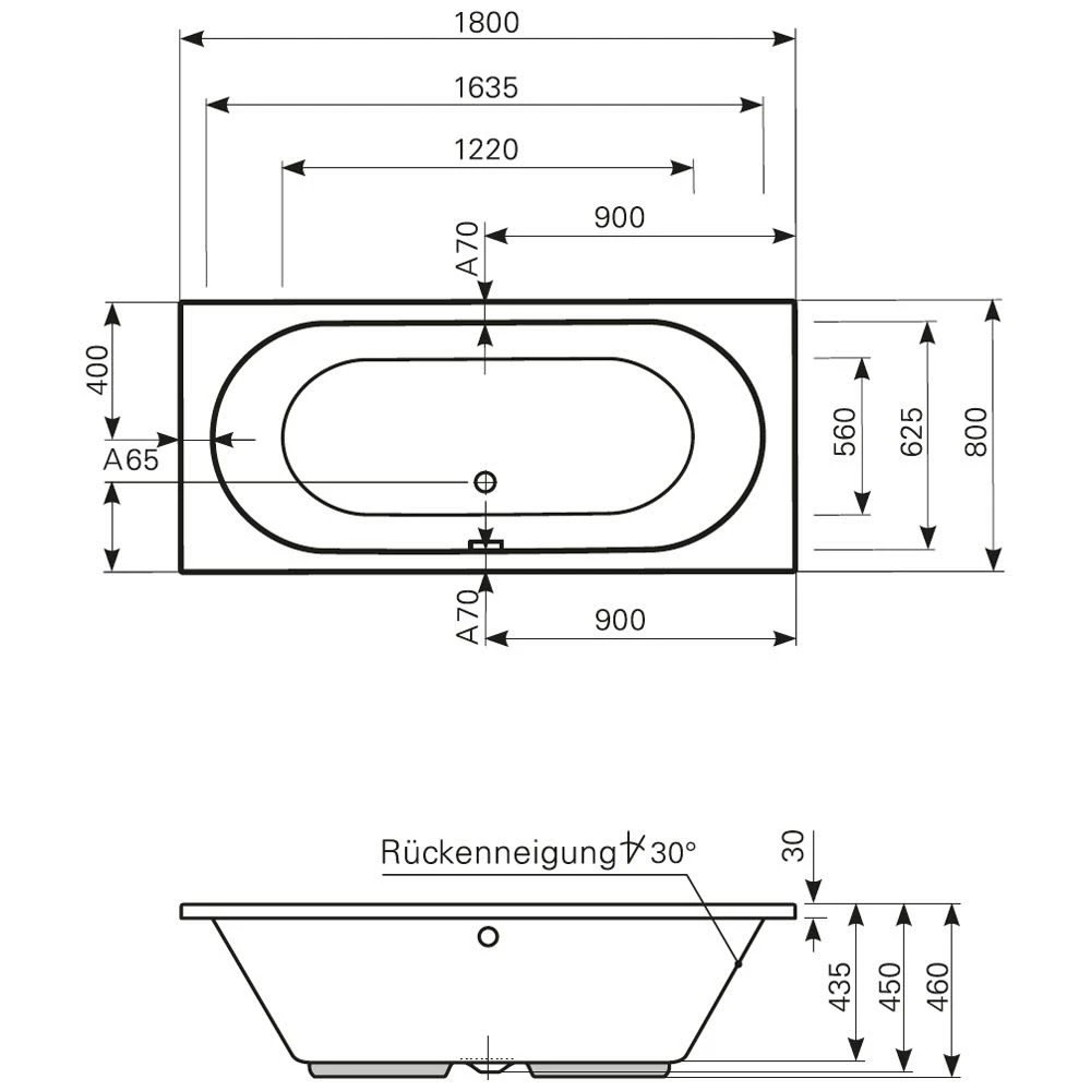 Architekt Duo Badewanne 180 x 80 cm