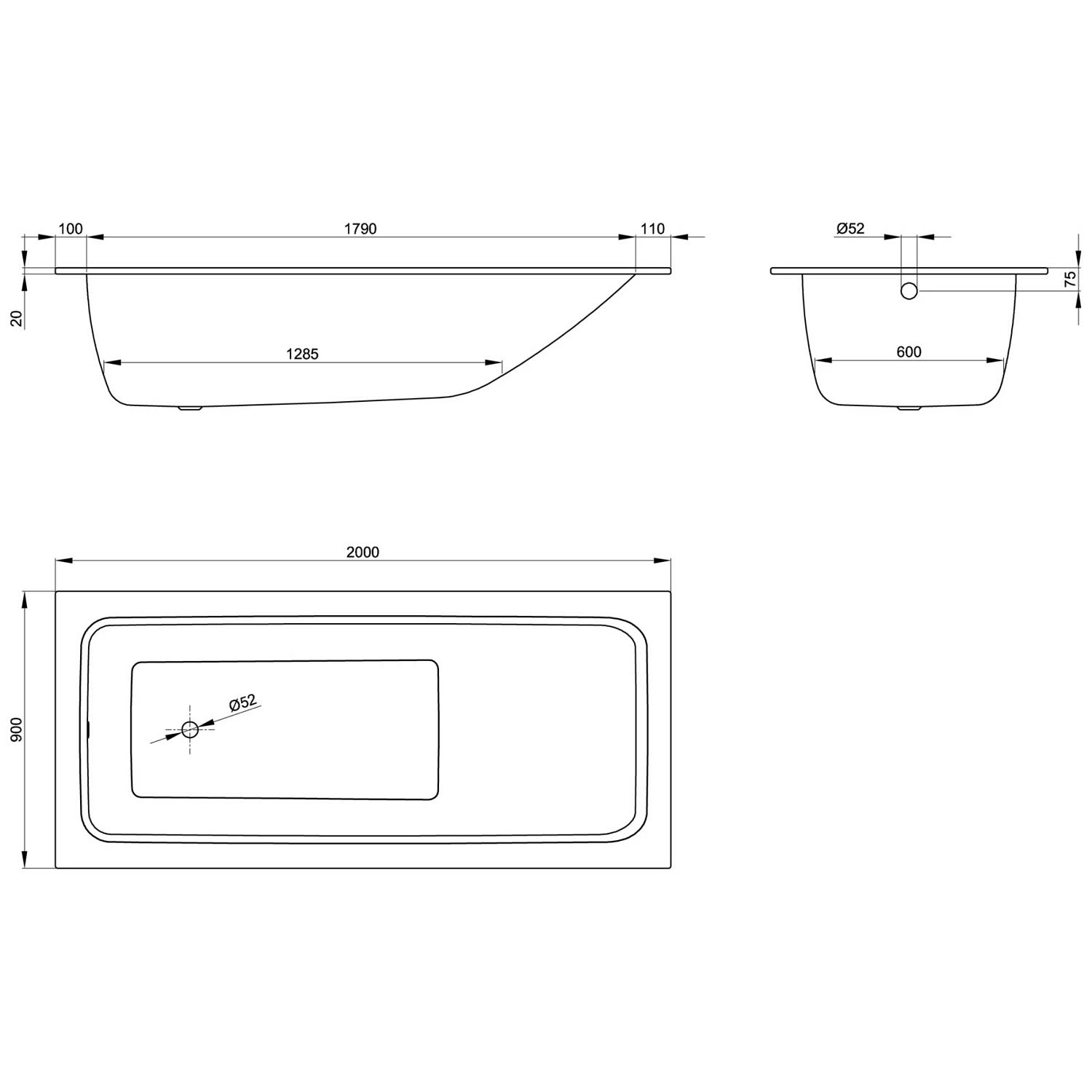 Bette One Relax Badewanne 200 x 90 mit rundem Ablauf