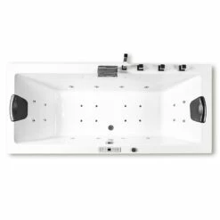 - der Whirlpool wird nur dann mit vorgebohrten Löchern geliefert, wenn die Caribia 5-Loch-Armatur (siehe Zubehör) mitbestellt wird