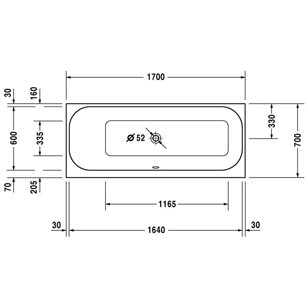 Duravit Happy D2 Rechteck Whirlwanne 170 x 70 cm mit Combi-System E, Rückenschräge links