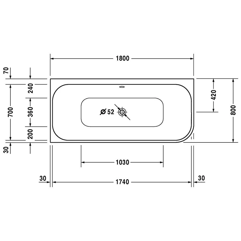 Duravit Happy D2 Rechteck Whirlwanne 180 x 80 cm mit Combi-System P, Ecke links