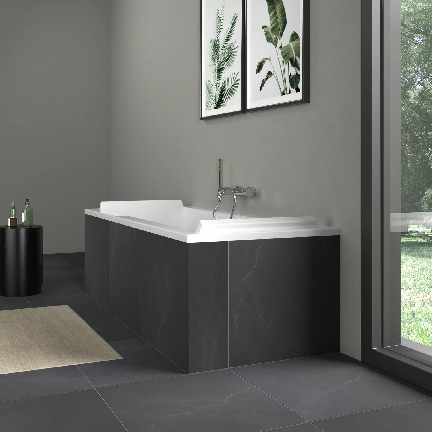 Eine geniale Wellness-Auszeit zu zweit gelingt in der formschönen Duravit Starck Rechteck-Badewanne! Das geradlinige Designobjekt aus der Feder Philippe Starcks mit seiner modernen, kantigen Kontur und zwei bequemen gegenüberliegenden Rückenschrägen. Der großzügige, geometrisch gestaltete Innenraum sowie der mittig angeordnete Ab- und Überlauf erzeugen einen komfortablen Sitzbereich für zwei. Die beidseitig angeformten Nackenstützen bieten eine perfekte Ablage für den Kopf und sorgen für eine entspannte Liegeposition. Ergänzend kann das Wohlfühlerlebnis mit den optional erhältlichen Duravit Starck Nackenkissen gelungen abgerundet werden. Dank des schlag- und stoßunempfindlichen Sanitäracryls mit seiner glatten, porenfreien Oberfläche stellt sich beim Baden zudem ein angenehm warmes Hautgefühl ein. Die Badewanne kann wahlweise als Einbauversion verfliest oder mit einer passenden Wannenverkleidung aus weißem Acryl kombiniert werden, für maximalen Gestaltungsfreiraum.
