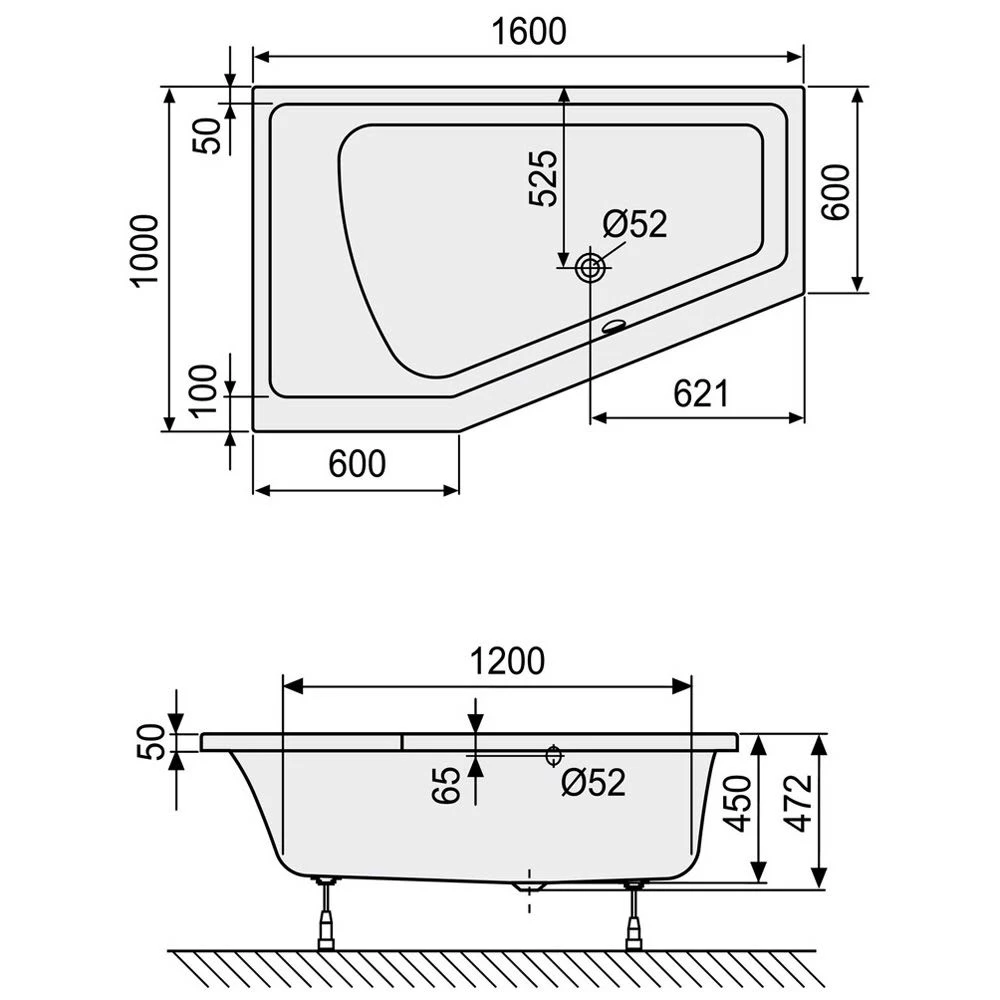 DUSCHOLUX Prime-Line 251 Raumsparwanne asymmetrisch Einbau Ecke links