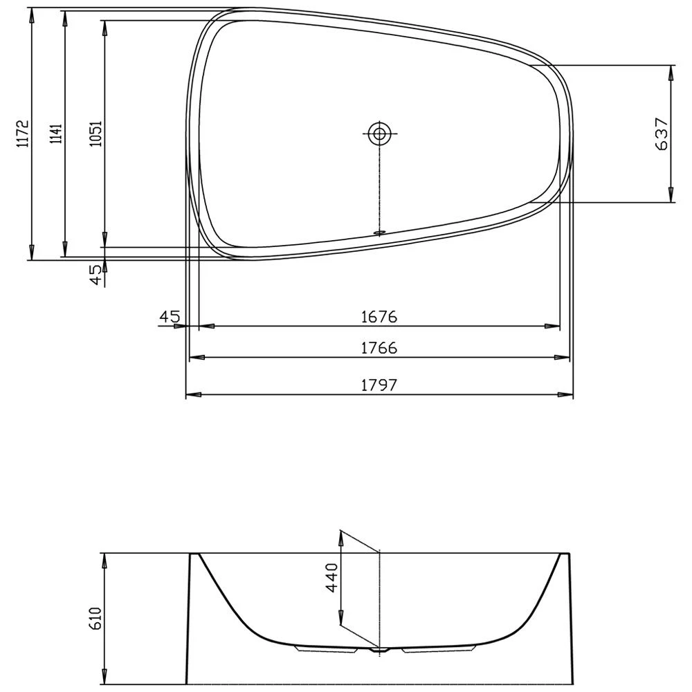 Hoesch SingleBath Duo Badewanne freistehend 179,8 x 117,3 cm, Überlauf rechts
