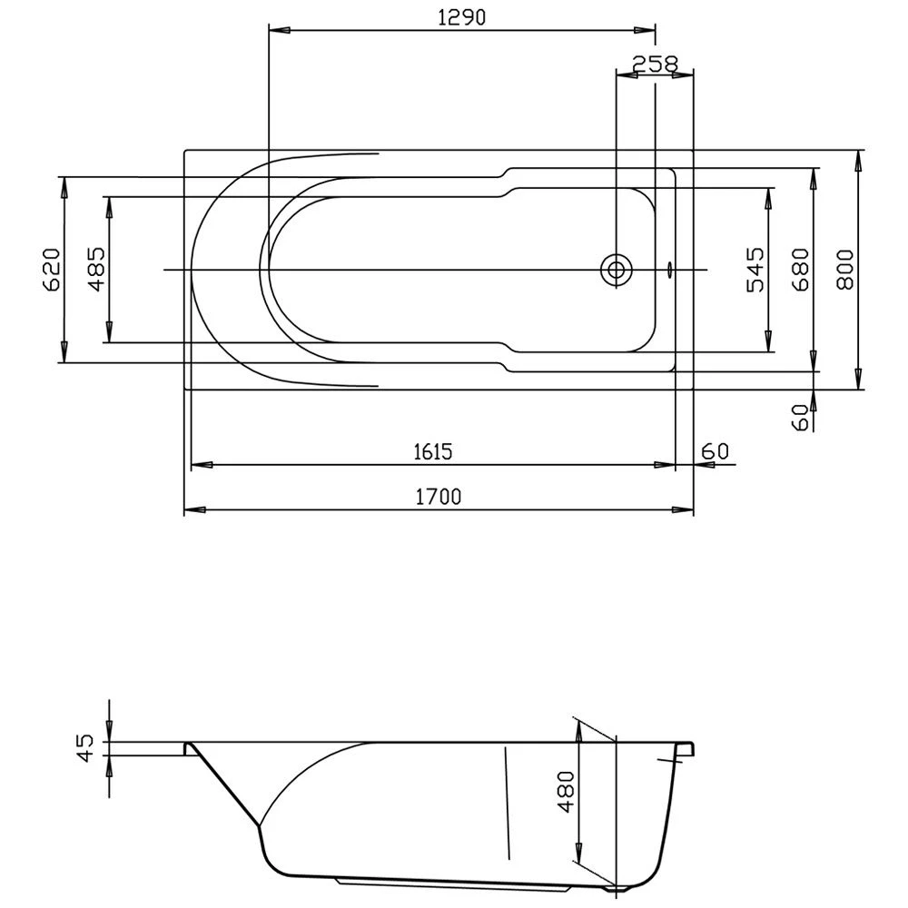 Hoesch Spectra Rechteck-Badewanne 170 x 80 cm mit Duschzone