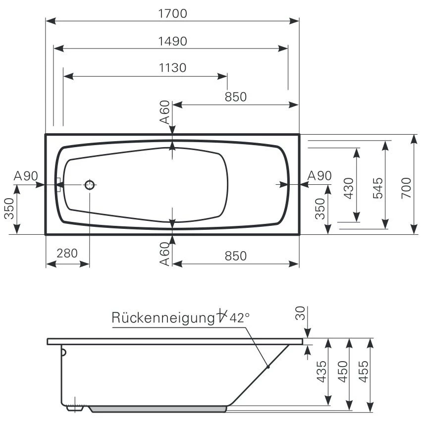Mauersberger Badewanne Ceraria 170 x 70 cm