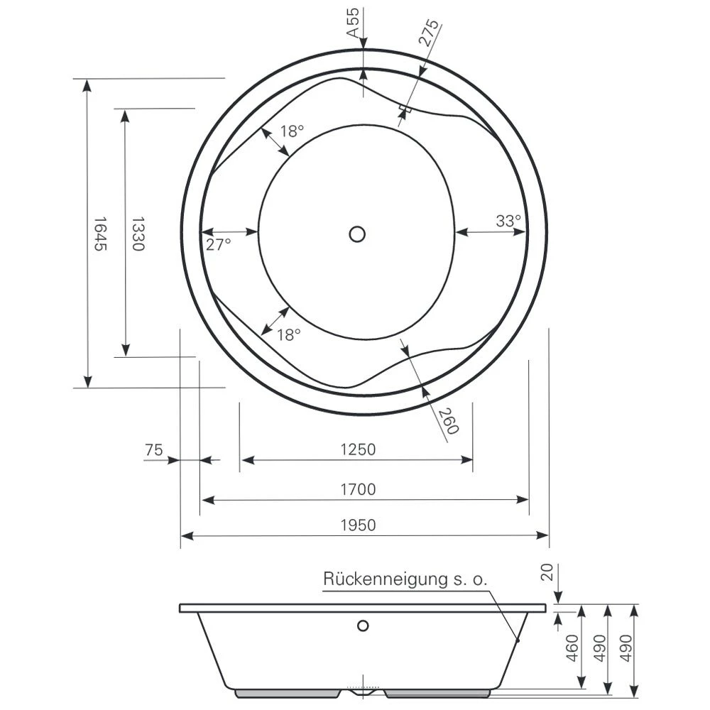 Caribia Vidal Premium Badewanne 182 X 182 Cm, Rund, Ohne Schürze