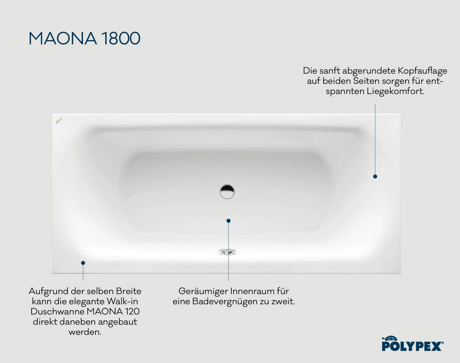 DUSCHOLUX Step-in Pure Badewanne 180 X 80 Cm Mit Integriertem Wasserzulauf, Einstieg Rechts