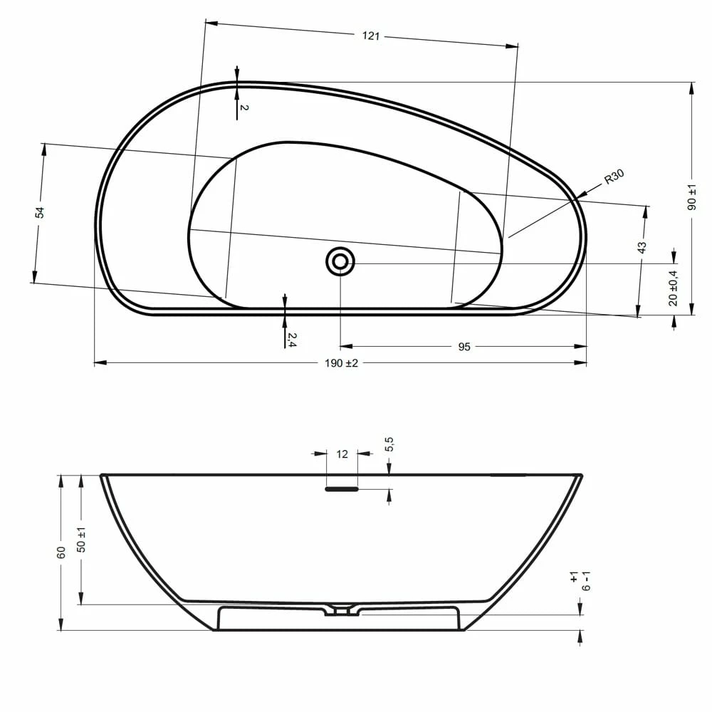 Riho Granada freistehende Badewanne 190 x 90 cm