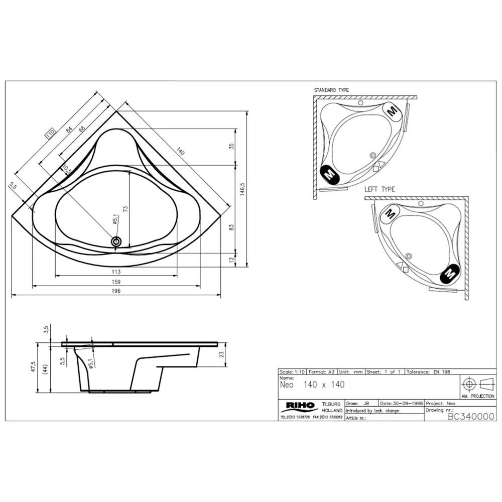 Riho Neo Eck-Badewanne 140 x 140 cm