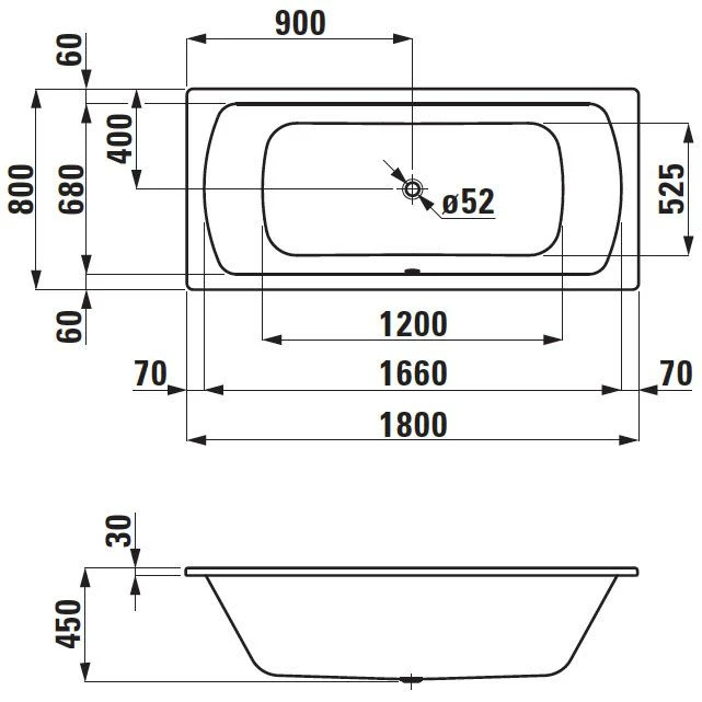 Steel Duo 180 Rechteck-Stahlbadewanne 180 x 80 cm