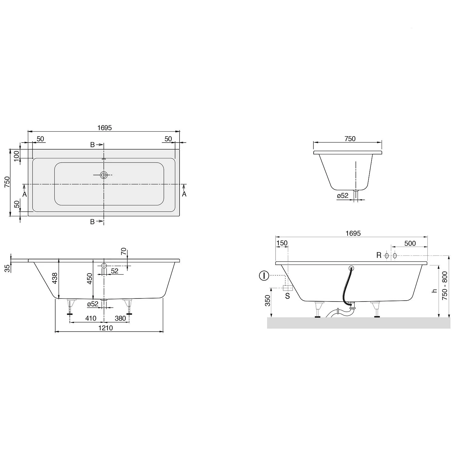 Villeroy & Boch Subway Duo Badewanne 170 x 75 cm mit Profibox 2.0 Nische